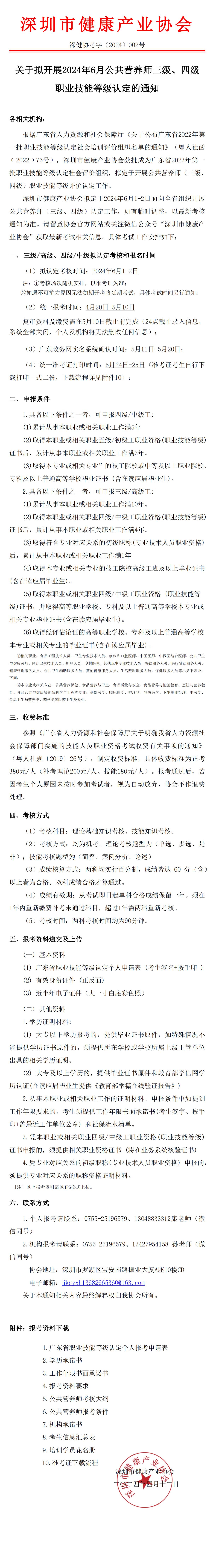 關于擬開展2024年6月公共營養師職業技能等級認定工作的通知